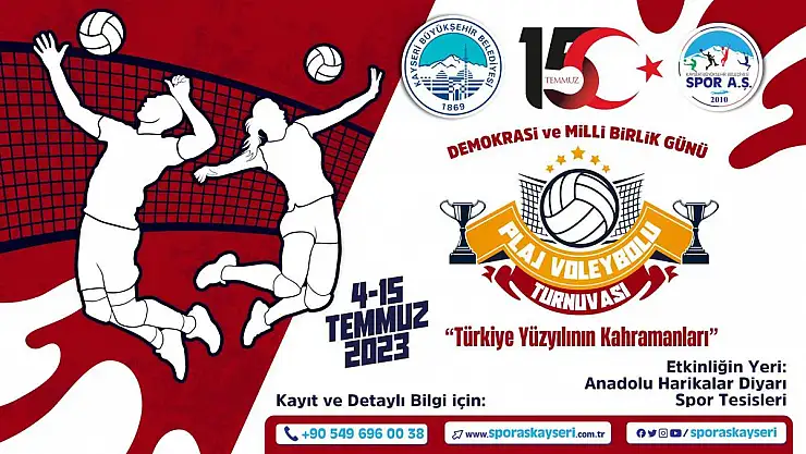 Kayseri Büyükşehir Belediyesi Spor A.Ş. tarafından 15 Temmuz Demokrasi ve Milli Birlik Günü’ne özel “Türkiye Yüzyılının Kahramanları” teması ile 4-15 Temmuz 2023 tarihleri arasında düzenlenecek Plaj Voleybolu Turnuvası’na kayıtlar başladı.