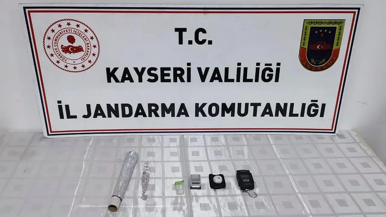Kayseri İl Jandarma Komutanlığı KOM Şube Müdürlüğü ve Kocasinan İlçe Jandarma Komutanlığı ekipleri, uyuşturucuyla mücadele kapsamında çalışmalarını sürdürüyor. Merkez Melikgazi ilçesine bağlı Germir Mahallesi’nde durdurulan araçta arama yapıldı. Kontrolde iki parça halinde toplam 23 gram uyuşturucu metamfetamin maddesi, hassas terazi ve uyuşturucu paketlemede kullanıldığı düşünülen alüminyum folyo ele geçirildi.