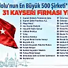 Kayseri Büyükşehir Belediye Başkanı Dr.Memduh Büyükkılıç, 'Anadolu'nun En Büyük 500 Şirketi Listesi'nde yer alan 31 Kayseri firmasını tebrik etti.