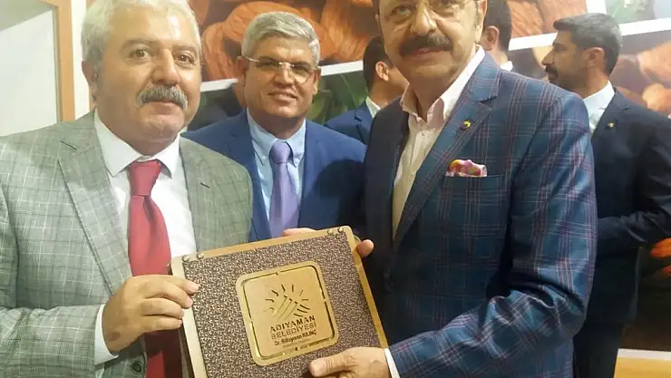 Adıyaman Belediyesi Kültür ve Sosyal İşler Müdürü Hakan Özöncel’in ev sahipliğini yaptığı standı ziyaret eden TOBB Başkanı Rifat Hisarcıklıoğlu ile Sabah Gazetesi Yazarı Yavuz Donat’a yöresel tatlar ikram edildi.