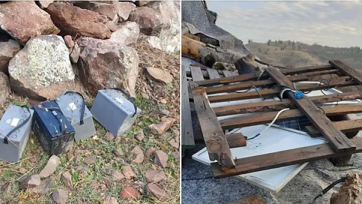 Kayseri'de Yılanlı Dağı'nda bulunan yürüyüş gruplarına ait dağ evi hırsızlığa maruz kaldı.Sabah vakti dağ evine gelen hırsızlar güneş panellerini sökerek aküleri çaldı.