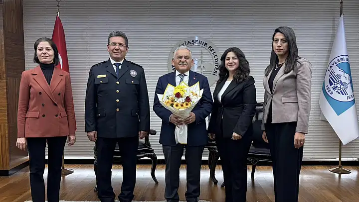 Kayseri Büyükşehir Belediye Başkanı Dr. Memduh Büyükkılıç, 26 Ocak Dünya Gümrük Günü dolayısıyla Gümrük Müdürü Muzaffer Özkan, Serbest Bölge Gümrük Müdürü Şule Öztekin, Gümrük Muhafaza Kaçakçılık ve İstihbarat Müdürü Birsen İşbilir Keser ile Kayseri Ürün Güvenliği Denetimleri Grup Başkanı Göknur Yılan Öztürk'ü makamında kabul etti.