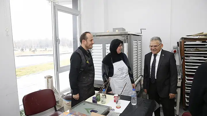 Kayseri Büyükşehir Belediye Başkanı Dr. Memduh Büyükkılıç, Talas Yolu üzerinde hizmet veren KAYMEK Akademi'yi ziyaret etti. Başkan Büyükkılıç, sanat ve mesleki eğitim kurslarının verildiği sınıflara girerek kursiyerlerle sohbet etti.