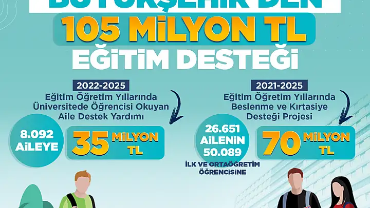 Kayseri Büyükşehir Belediye Başkanı Dr. Memduh Büyükkılıç'ın hayata geçirdiği 'Üniversitede Öğrencisi Okuyan Aile Destek Yardımı' ile 'Beslenme ve Kırtasiye Desteği' projeleri, öğrenci ve ailelerin bütçesine önemli katkı sundu. Üniversite öğrencisi bulunan ailelere yönelik destek kapsamında 2022 yılından bu yana 8 bin 92 aileye 35 milyon 170 bin TL ödeme yapılırken, beslenme ve kırtasiye desteğiyle 26 bin 651 ailenin 50 bin 89 öğrencisine 70 milyon TL destek verildi. Böylece iki proje ile toplamda 105 milyon 170 bin TL'lik eğitim desteği sağlanmış oldu.