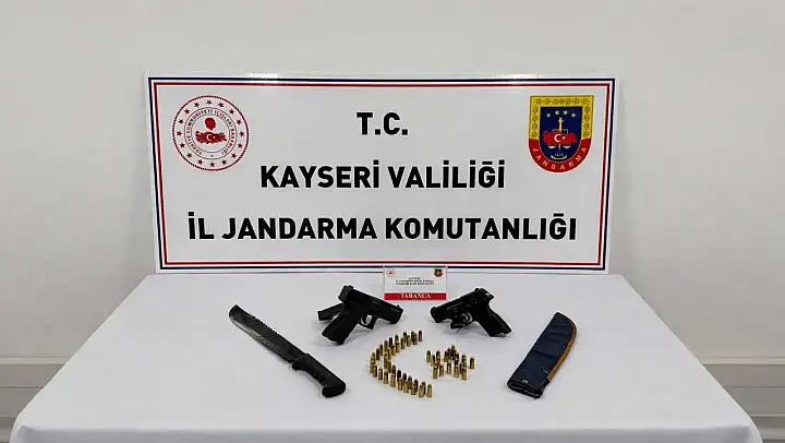 Narkotik Suçlarla Mücadele, İstihbarat Şube Müdürlüğü ve Develi İlçe Jandarma Komutanlığı ekiplerince 15.01.2026 tarihinde O.A. isimli şahsın ikamet adresi ve iş yerinde yapılan adli aramada; 2 adet tabanca, 67 adet fişek, 2 adet şarjör ve 1 adet bıçak ele geçirildi.