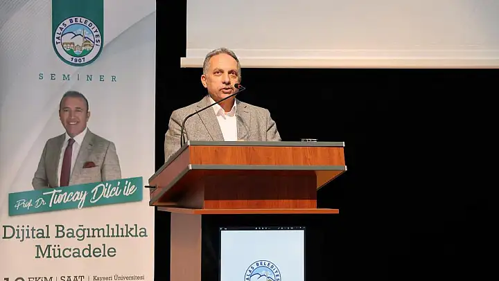 Talas Belediyesi tarafından ilçede görevli öğretmenlere yönelik 'Dijital Bağımlılıkla Mücadele' konulu seminer gerçekleştirildi. Dijital Bağımlılıkla Mücadele Derneği Genel Başkanı ve Gazi Üniversitesi Öğretim Üyesi Prof. Dr. Tuncay Dilci tarafından verilen seminer, öğretmenlerden yoğun ilgi gördü. Kayseri Üniversitesi 15 Temmuz Yerleşkesi Kongre ve Kültür Merkezi'nde gerçekleşen seminerin açılışında konuşan İlçe Milli Eğitim Müdürü Mustafa Elmalı, 'Öğrencilerimizi bağımlı olmaktan kurtarıp bağlı halde yaşatmak zorundayız. O yüzden bilgisayar, telefon, tablet gibi araçları kullanırken bağımlı hale gelmelerinin önüne geçme konusunda öğretmenlerimizden katkı bekliyoruz' dedi.