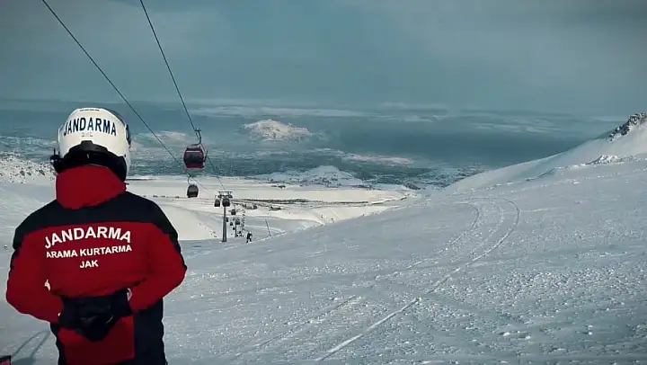 Jandarma Genel Komutanlığı, Kayseri'nin önemli kış turizm merkezlerinden Erciyes Kayak Merkezi'nde görev yapan Jandarma Arama Kurtarma (JAK) timlerinin çalışmalarını sosyal medya hesabından paylaştı.