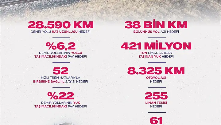 Tam tersine, Karadeniz'in kuzeyindeki savaşla birlikte üretim ve tedarik kanalları yeni tehditlerle karşı karşıya kalmıştır.Türkiye'nin bu zorlu dönemi aşarak hedeflerine ulaşması için gücünü, imknlarını ve potansiyelini harekete geçirmenin gayreti içindeyiz.2053 yılına kadar demir yolu, kara yolu, deniz yolu, hava yolu ve haberleşme için 198 milyar dolar yeni yatırım yapacağız.