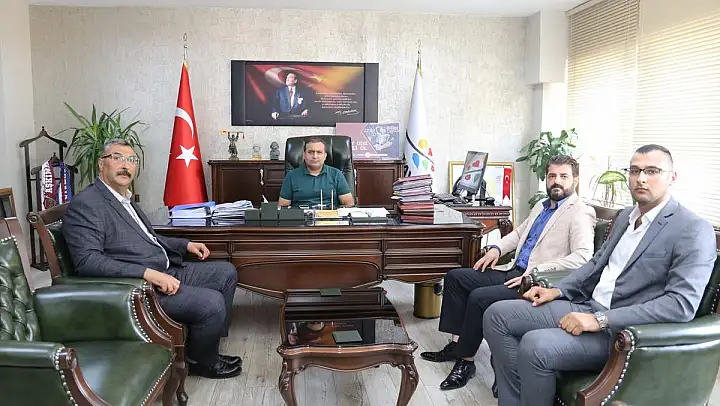 MHP Defne İlçe Başkanı Ferit Kaplan ve beraberindeki yönetim kurulu üyeleri, Hatay Büyükşehir Belediyesi Genel Sekreteri Nihat Tazearslan'ı makamında ziyaret etti.