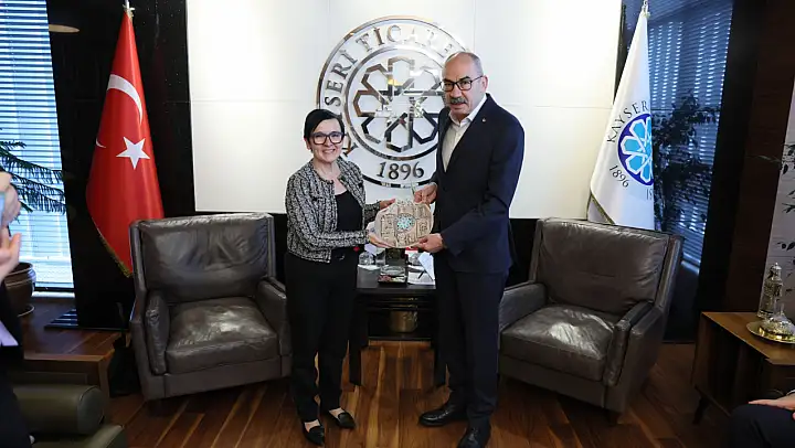 Başkanlık makamında gerçekleştirilen ziyarette; Kayseri'nin 6 bin yıllık tarihi, 4 bin 500 yıllık ticari geçmişi ve yüzyıllık sanayi üretim kabiliyeti olan kadim bir şehir olduğunu ifade eden Başkan Gülsoy, Kayseri'nin dış ticaret rakamlarını paylaşarak iş birliği çağrısını yineledi.