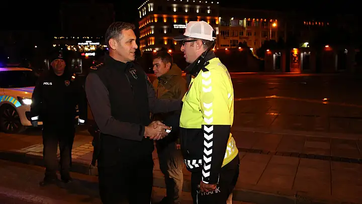 Kayseri İl Emniyet Müdürü Atanur Aydın, Cumhuriyet Meydanı'nda gerçekleştirilen asayiş ve trafik uygulamasında görev yapan ekipleri ziyaret etti.