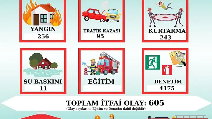 Kayseri'de itfaiye ekipleri 1 ayda 605 itfai olaya müdahale etti. En çok vaka ise 256 ile yangın oldu.