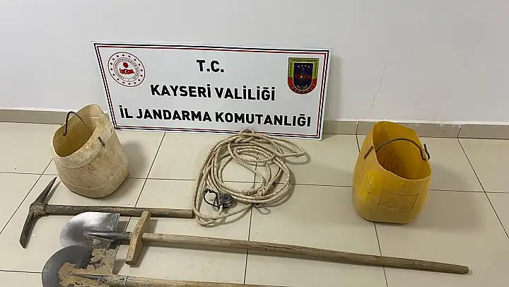 KAYSERİ (1HA) - Kayseri'de jandarma ekiplerince kaçak kazı yapan M.A. isimli şüpheli kazı yapılan bölgenin yakınında suç aletleri ile birlikte yakalandı.