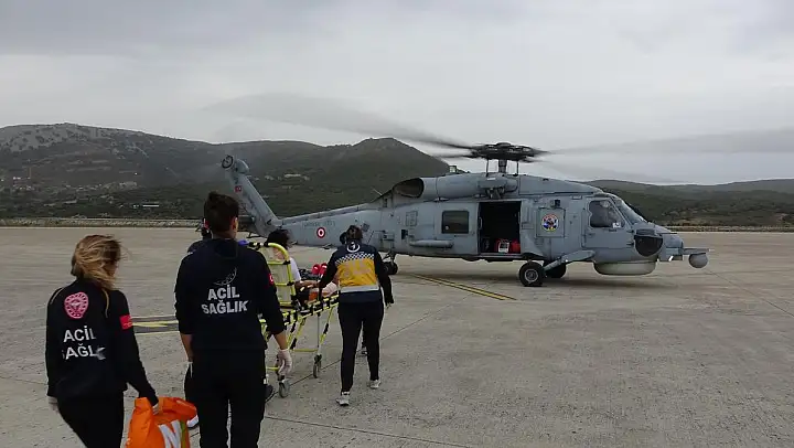 Gökçeada'da kalp krizi geçiren bir kadının adadan Çanakkale'ye tıbbi tahliyesi, Deniz Kuvvetleri Komutanlığına ait helikopter ile sağlandı.