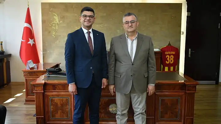 Kaymakam Necmettin Öztoprak, Kayseri Büyükşehir Belediyesi Genel Sekreteri Hüseyin Beyhan'ı makamında ziyaret etti.