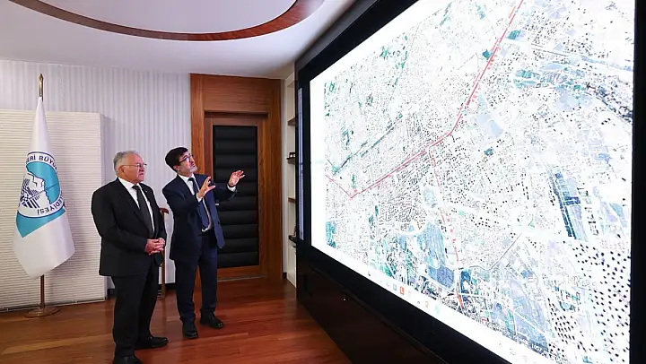 Başkan Memduh Büyükkılıç, Altyapı Yatırımları Genel Müdürü Dr. Yalçın Eyigün ile yeni raylı sistem hatlarını görüştü.