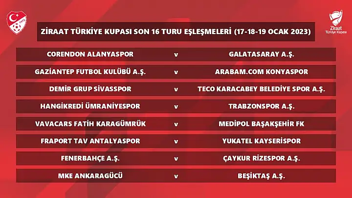 ZTK Son 16'ya kalan takımların eşleşmeleri şöyle;