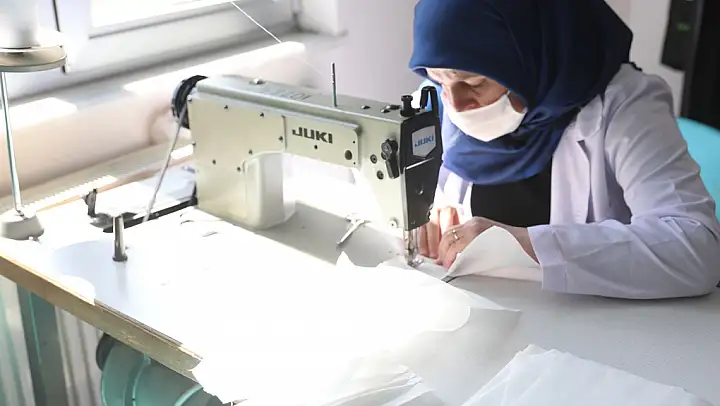 Kocasinan Belediyesi tarafından temin edilen tıbbi maskelik kumaşı dikmek için dikiş makinalarının başına geçen gönüllü kurs eğitmenlerini ziyaret eden Başkan Çolakbayrakdar, çalışmaları inceleyip, kadınlara kolaylıklar dileyerek; 'Kocasinan Akademi Yakut atölyesinde gönüllü hanım kardeşlerimizin katkılarıyla maske imalatı yapılıyor. Bu noktada emeği geçen bütün kardeşlerimize teşekkür ediyorum. Hep dile getirdiğimiz gibi bu zorlukları bu güçlükleri birlikte aşacağız. Her zaman olduğu gibi bugün de Kayseri'mizde ve Kocasinan'ımızda Hanım kardeşlerimiz 'Biz de varız' dediler ve emekleriyle birlikte bu süreçteki mücadeleye destek oluyorlar. İnşallah en kısa süre içerisinde sağlıkla ve sıhhatle bir arada olmak dileklerimizle.' ifadelerini kullandı.