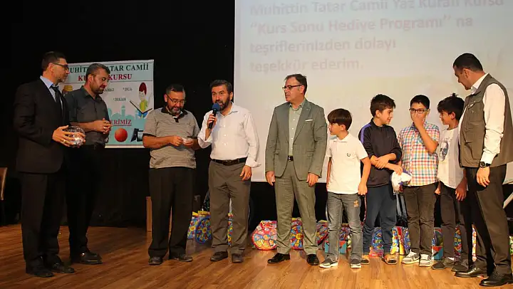 İstiklal Marşının okunması, öğrenciler tarafından okunan Kuran-ı Kerim tilaveti ve slayt gösteriminin ardından programın açılış konuşmasını yapan Muhittin Tatar Cami İmam Hatibi Nazmi Yüksel, '17 Haziran'da başlayan 8 haftalık yaz Kuran kursumuzun sonuna gelmiş bulunuyoruz. Kursumuzu 78 öğrenci ile kapatıyoruz. Bu 78 öğrenciden 60 tanesi Kur'an-ı Kerim'i okuma başarısı göstermiştir. Uzaktan ve yakından çocuklarını bize emanet eden velilerime çok teşekkür ediyorum. Bu merasimdeki ödüllerimizle bize maddi manevi desteklerini esirgemeyen hayırseverlerimize huzurlarınızda çok teşekkür ediyorum.' dedi.