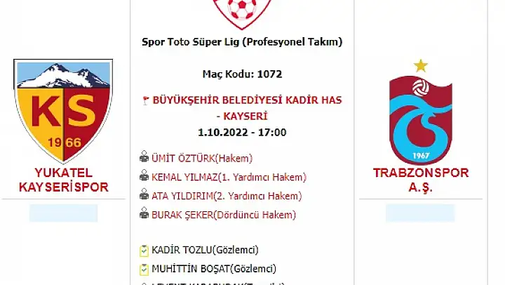 Yukatel Kayserispor, Süper Ligin 8. haftasında yarın (cumartesi), geçen sezonun şampiyonu Trabzonspor'u ağırlayacak. Ümit Öztürk'ün düdük çalacağı karşılaşma saat 17.00'da başlayacak.