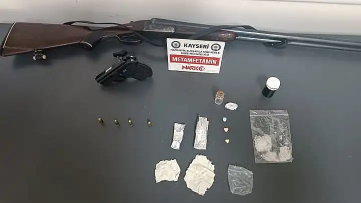 Kayseri İl Emniyet Müdürlüğü Narkotik Suçlarla Mücadele Şube Müdürlüğü ekipleri uyuşturucu madde ile mücadeleye devam ediyor. Bu kapsamda Melikgazi'nin Yıldırım Beyazıt Mahallesi'nde M.D. isimli şahsın uyuşturucu madde ticareti yaptığı bilgisi alınması üzerine ekipler harekete geçti. Düzenlenen operasyonda 3 paket halinde 6 gram metamfetamin maddesi, 2 parça halinde LSD maddesi, 3 adet ekstasy, 1 adet tabanca ve 4 adet mermi ve 1 adet ruhsatsız tüfek ele geçirilirken E.K., E.A., N.D. isimli şahıslara 'Uyuşturucu madde kullanmak ve bulundurmak' suçundan işlem yapıldı.
