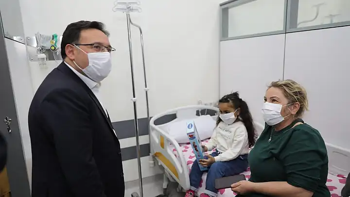 Hastanede tedavileri devam eden çocukları ziyaret edip, geçmiş olsun dileklerinde bulunarak,