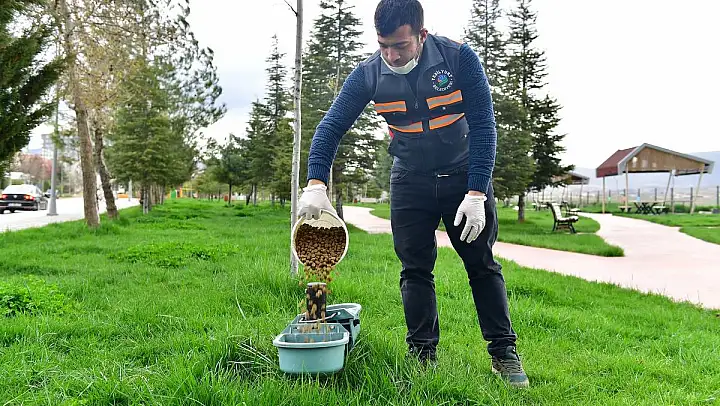 talimatıyla; beslenme sorunu yaşayan sokak hayvanları için doğaya kuru yem bırakmaya başladı.