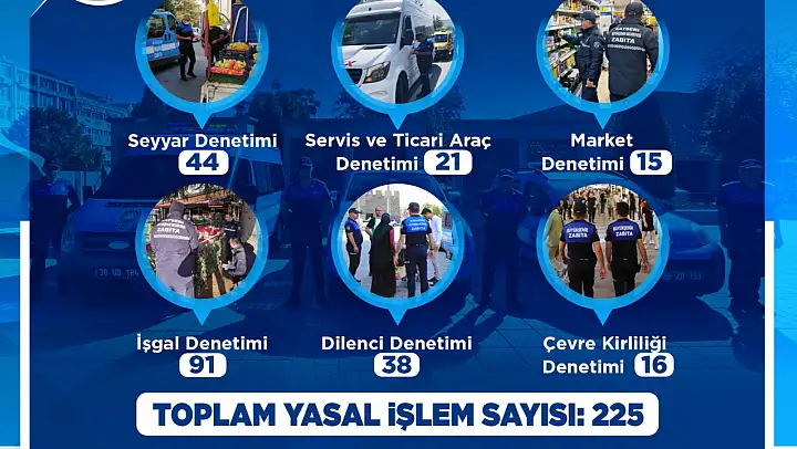 Ayrıca 38 dilenciye işlem yapılırken, çevre kirliliği ile ilgili 16 denetim gerçekleştirildi. Ay boyunca toplam 225 yasal işlem uygulanarak şehir düzeninin korunmasına katkı sağlandı.