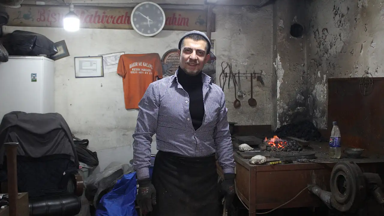 Kayseri’de yaşayan evli ve 1 çocuk babası Ozan Köksal (28), 5 yıl önce arkadaşının tavsiyesiyle başladığı kalaycılık mesleğini Eski Sanayi’de bulunan iş yerinde sürdürüyor. Daha önce farklı bir işte çalıştığını belirten Köksal, arkadaşının kendisini mesleğe yönlendirdiğini ve yetiştirdiğini ifade etti.