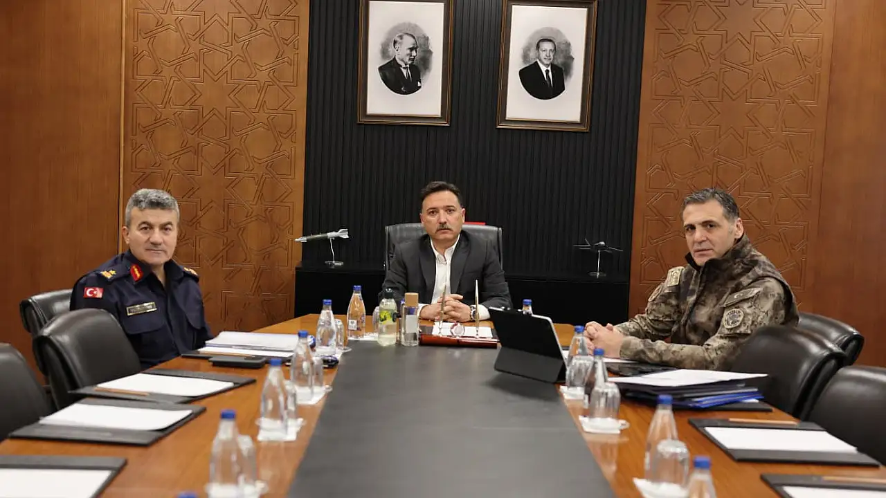Vali Gökmen Çiçek başkanlığında Valilik Toplantı Salonu’nda gerçekleştirilen toplantıya, İl Emniyet Müdürü Atanur Aydın ile İl Jandarma Komutanı Tuğgeneral Bilgihan Yeşilyurt katıldı.