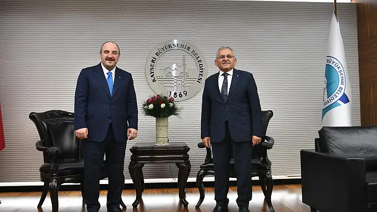 Sanayi ve Teknoloji Bakanı Mustafa Varank, Kayseri Büyükşehir Belediyesi ziyaretinde, Başkan Dr. Memduh Büyükkılıç ile kucaklaşarak, sıcak ve samimi bir sohbet gerçekleştirdi.