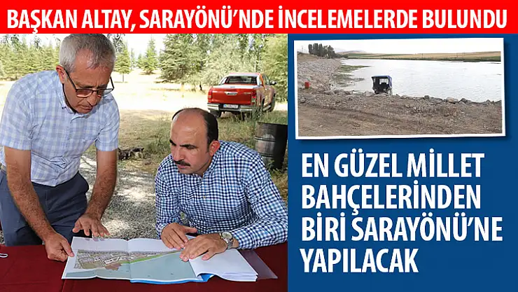 Konya Büyükşehir Belediye Başkanı Uğur İbrahim Altay, Çevre ve Şehircilik Bakanlığı'nın Sarayönü'ne yapacağı Millet Bahçesi alanında incelemelerde bulundu.Cumhurbaşkanı Recep Tayyip Erdoğan'ın Türkiye'ye kazandırdığı Millet Bahçelerinin en güzel örnekleri