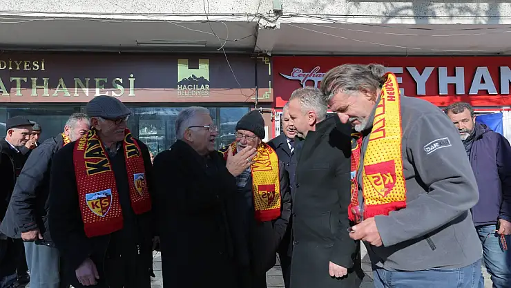 Kayseri Büyükşehir Belediye Başkanı Dr. Memduh Büyükkılıç, Hacılar ilçesinde vatandaşlarla bir araya gelerek gençlere Kayserispor atkısı hediye etti, büyüklerle sohbet etti.