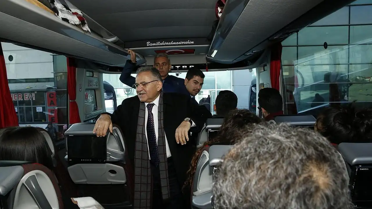 Büyükşehir Belediye Başkanı Büyükkılıç, Terminal ziyaretinde peronlarda hareket saatini bekleyen otobüslere de bindi. “Hayırlı Yolculuklar” temennisinde bulunan Başkan Memduh Büyükkılıç, yolcuların terminalle ilgili görüşlerini de aldı.