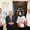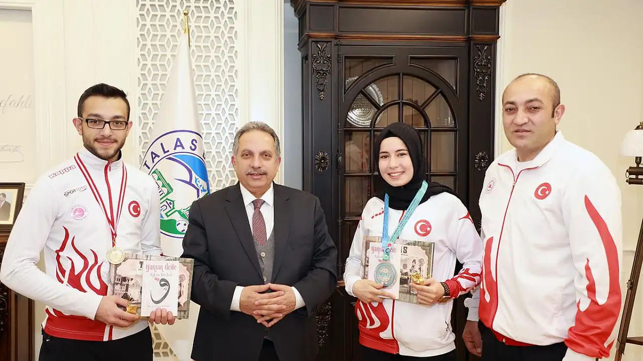 Talas Belediye Başkanı Mustafa Yalçın, ülkemize uluslararası şampiyonalarda madalya kazandıran Kayserili sporcuları makamında kabul etti. Elde edilen başarıdan gurur duyduğunu ifade eden Başkan Yalçın, sporcuları altınla ödüllendirdi.