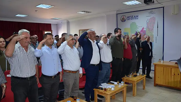 Adana'nın Kozan ilçesi Belediye meclisi Barış Pınarı Harekatı'na asker selamı vererek destek verdiler.Kozan Belediyesi olağanüstü meclis toplantısını Belediye Başkanı Kazım Özgan başkanlığında gerçekleştirdi.