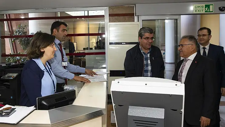 Büyükşehir Belediye Başkanı Dr. Memduh Büyükkılıç, KASKİ Genel Müdürlüğü’nde Genel Müdür Doç. Dr. Özgür Özdemir tarafından karşılandı. Yatırım toplantısı öncesi KASKİ birimlerini gezen Başkan Memduh Büyükkılıç, personelle ve işlemlerini yaptırmak üzere gelen vatandaşlarla selamlaştı. Tüm birimleri gezen Başkan Büyükkılıç, çalışanlara kolaylıklar diledi.