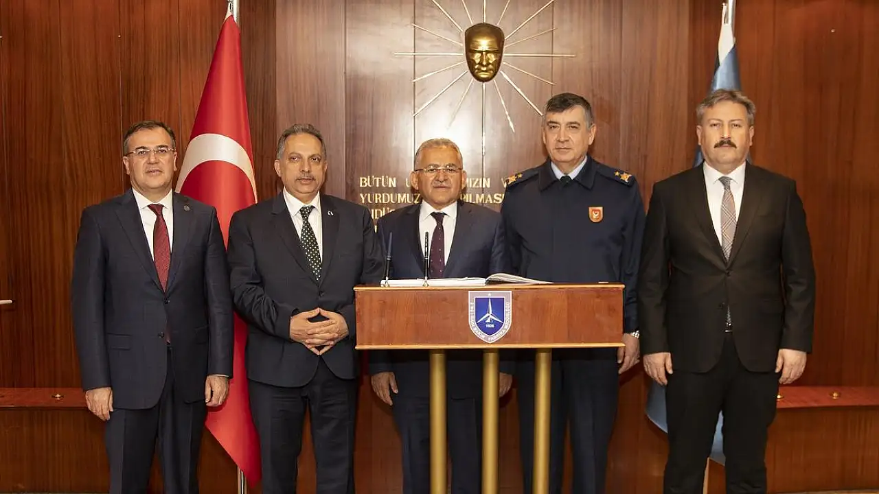 beraberindeki Melikgazi Belediye Başkanı Mustafa Palancıoğlu, Kocasinan Belediye Başkanı Ahmet Çolakbayrakdar, Talas Belediye Başkanı Mustafa Yalçın ve Hacılar Belediye Başkanı Bilal Özdoğan ile birlikte ilk ziyaretini Vali Şehmus Günaydın’a yaptı.