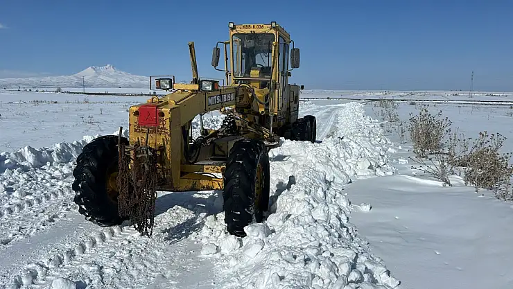 Kayseri Büyükşehir Belediyesi, kırsalda etkili olan yoğun kar yağışı ve tipi nedeniyle kapanan yolları açmak için 130 personel ve 63 araçla yoğun mesai harcıyor.