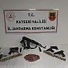KAYSERİ (1HA) - Kayseri’de jandarma ekiplerince iki farklı adrese düzenlenen operasyonda, hassas burunlu köpek ve dedektör yardımıyla arama yapıldı. Birden fazla silah, tabanca, şarjör, tabanca kılıfı ve mermi ele geçirilirken evde bulunan tabancalardan birisinin H.E.’nin öldürülmesi olayında kullanıldığı da tespit edildi. Olayla ilgili gözaltına alınan 2 kişiden 1’i tutuklandı.