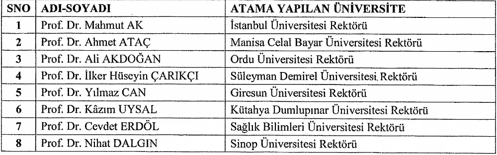 ÜNİVERSİTE REKTÖR ATAMA LİSTESİ