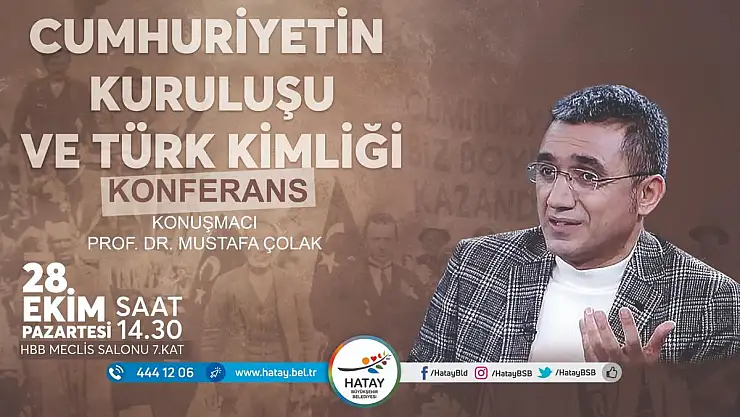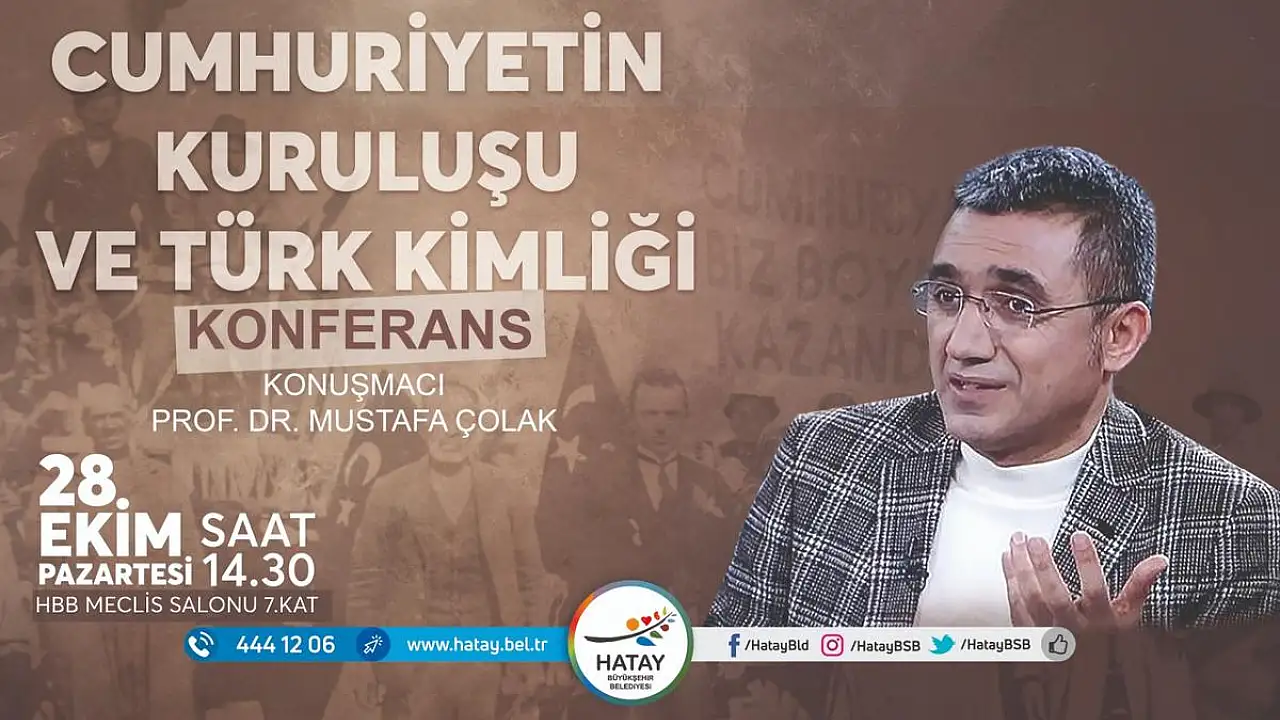 HBB 28 Ekim Pazartesi günü saat 14.30’da Prof. Dr. Mustafa Çolak’ın konuşmacı olacağı ‘Cumhuriyetin Kuruluşu ve Türk Kimliği’ isimli konferansa ev sahipliği yapacak.