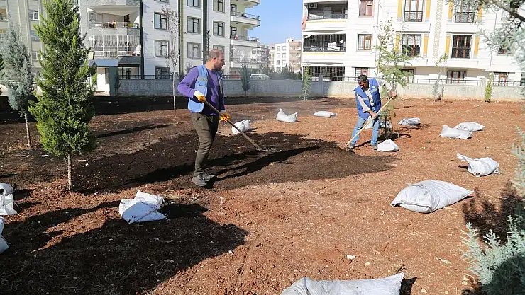 Haliliye Belediyesi, park ve bahçelerde mevsim şartlarına uygun yeşillendirme çalışmaları kapsamında çim ekimi ve bir sonraki dönemde daha güzel görünüme kavuşmaları için ağaç budama işlemlerini sürdürüyor.