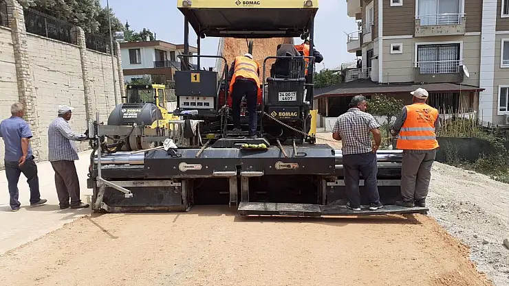 uzunluğunda ve 15 metre genişliğindeki yolda PMT serimi gerçekleştiren ekipler, yolu beton asfalt serimine