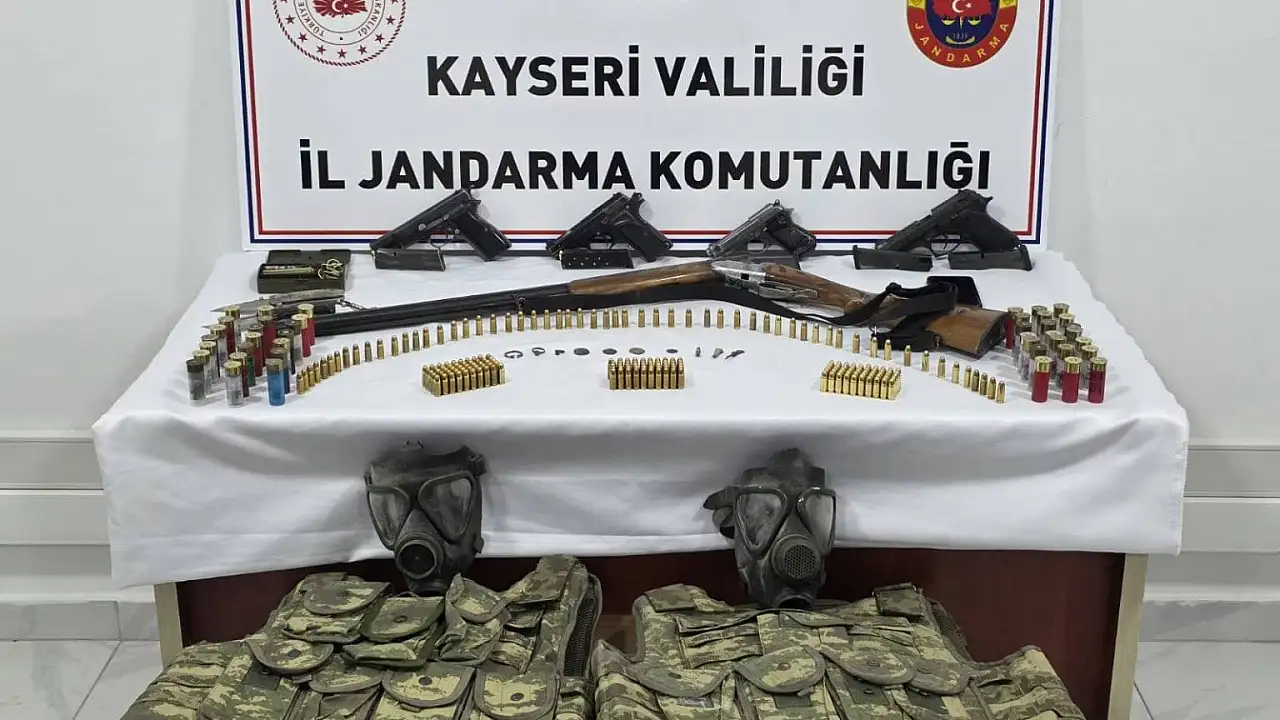 Jandarmanın bir adrese düzenlediği operasyonda çok sayıda silah, mühimmat ve tarihi eser ele geçirilirken, S.Ö. isimli şüpheli gözaltına alındı.