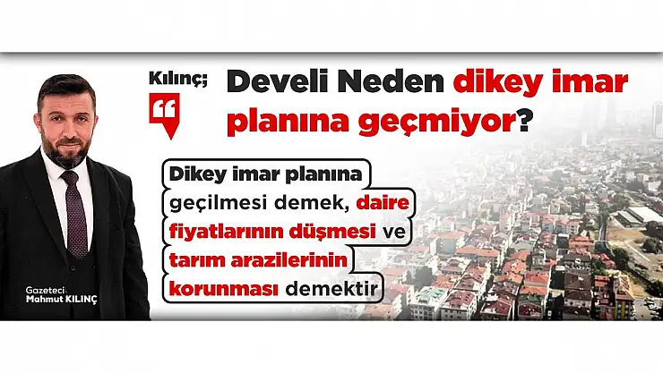 Gazeteci Mahmut Kılınç, 'Yatay imar planı Develi'de hem daire fiyatlarının yüksek olmasında bir etken gibi görünüyor hem de tarım arazilerinin bitmesine sebep oluyor, Develi dikey imar planına geçmeli' ifadelerini kullandı Mahmut Kılınç 'Yatay imar planı