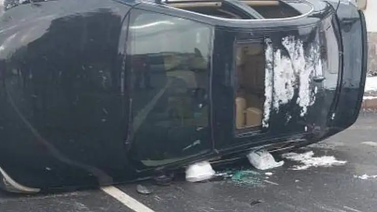 Kayseri’de meydana gelen trafik kazasında direksiyon hakimiyetini kaybeden sürücü yan yatan araçta hafif yaralandı.