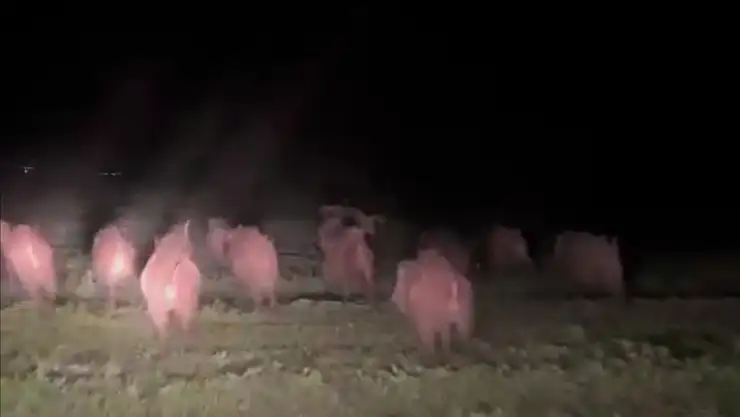 Havaların soğumasıyla hayvanlarda olumsuz etkileniyor. Aç kalan domuzlar yiyecek bulmak için yerleşim alanına yakın yerlere iniyor. Yeşilhisar ilçesi Karacabey Mahallesinde yaşayan Çiftçi Furkan Kökçe, tarlasından döndüğü esnada 23 tane domuzdan oluşan sürüyle karşılaştı. Çiftçi cep telefonuyla o anları kaydetti.