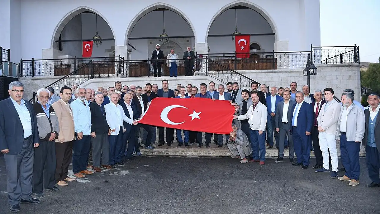 Yapılan duaların ardından cami önünde Türk Bayrağı açılarak Kahraman Mehmetçiğe