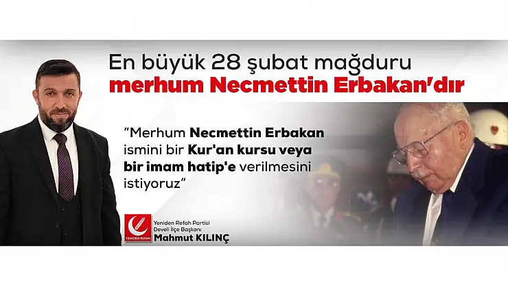 28 Şubat, 1997'de istifaya zorlanarak önü kesildi ve post modern darbe gerçekleşmiş oldu. Merhum Necmettin Erbakan'ın önü kesilmemiş olsaydı bugün Türkiye D8 projesiyle İslam dünyasını, Arap ülkelerinin parasını dolayısıyla dünyayı yönetiyor olacaktı, 28 Şubat post modern darbesiyle merhum Necmettin Erbakan'ın önü kesildi, bugün Arap ülkelerinin parasını yöneten dünyayı yöneten Amerika'dır.28 şubattan sonra merhum Necmettin Erbakan ve bir çok yol arkadaşına siyaset yasağı getirildi, bir çok memur mağdur edildi, geçtiğimiz aylarda Develi Belediyesi Yeşilhisarlı bir bayanı özel kalem kontenjanından belediyeye işe aldı, 28 Şubat mağduru bayan daha sonra Kayseri'de bir kuruma memur olarak geçiş yaptı, 28 Şubat mağduru bir bayana Develi Belediyesi'nin yaklaşımına saygı duyuyoruz, 28 şubatın en büyük mağduru merhum Necmettin Erbakan hocamızdır, yetkililerden Necmettin Erbakan ismini Develi'de bir imam hatip veya Kur'an kursuna verilmesini bekliyoruz" ifadelerini kullandı.